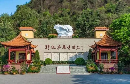四川省中江县城东黄继光纪念馆坐落于魁山脚下,占地面积1.6万平方米,由纪念性景区、陈列展览区和办公服务区组成。该馆是全国爱国主义教育示范基地、四川省爱国主义教育基地。占地16000多m2,由纪念性景区、陈列展览区和办公区服务区3部分组成。纪念性景区位于全馆中间,有门厅、中朝友谊亭和浮雕、题词等纪念性建筑。门厅是中国古牌楼式建筑,上方金字大匾镌刻着董必武同志题写的黄继光纪念馆馆名“黄继光纪念馆”。